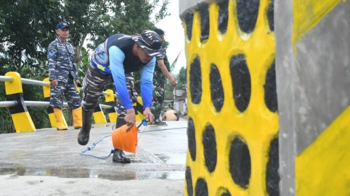 Banyuwangi – Anggota TNI yang tergabung dalam TNI Manunggal Membangun Desa (TMMD) telah menyelesaikan pengerjaan jembatan di Desa Silirsari dengan tahapan akhir berupa pengecatan