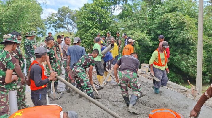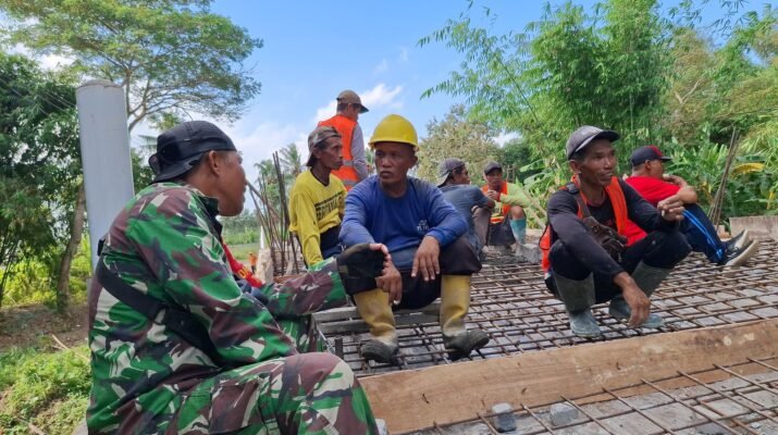 Satgas TMMD 125 Kodim Banyuwangi Laksanakan Pengecoran Jembatan Penghubung Desa di Siliragung
