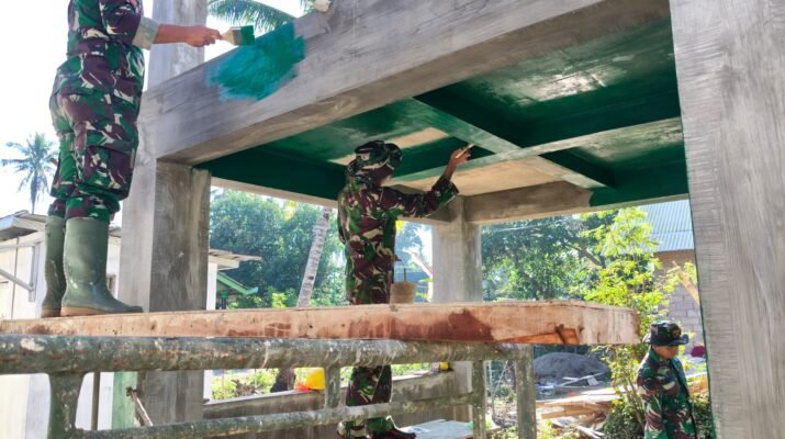 Banyuwangi – Derap langkah dan denting palu terus bergema di lokasi TMMD ke-125. Kloset dan keramik lantai yang telah terpasang kini menjadi saksi semangat
