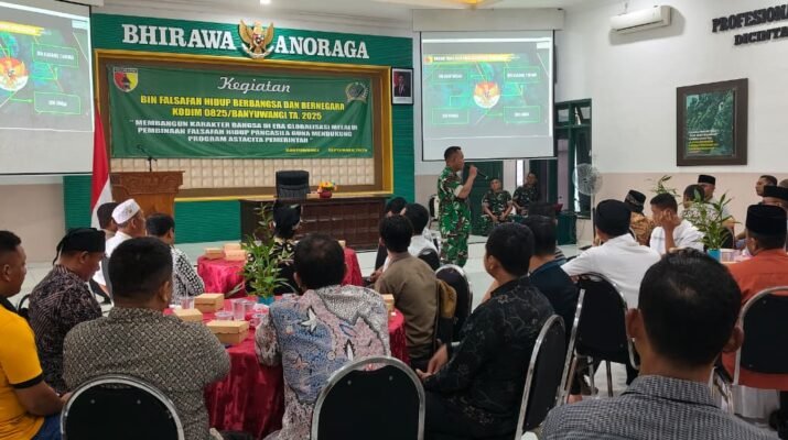 Banyuwangi – Kapten Czi Sahar Susanto mewakili Dandim 0825/Banyuwangi memimpin kegiatan Pembinaan Falsafah Hidup Berbangsa dan Bernegara TA 2025 di Aula Makodim 0825, Selasa