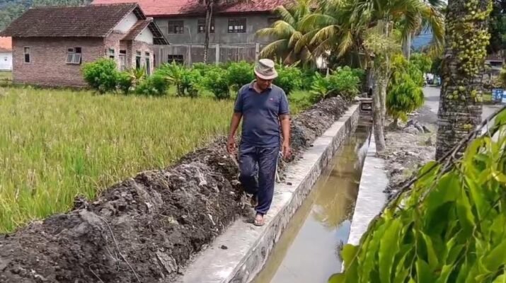 Anggota Satgas TNI Manunggal Membangun Desa (TMMD) ke-126 Kodim 0818/Malang-Batu terus menunjukkan dedikasi tinggi dalam melaksanakan pekerjaan peningkatan saluran irigasi di Desa Lebakharjo, Kecamatan