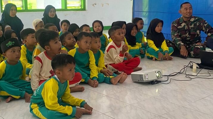 Anak-Anak RA Raudlotul Athfal Antusias Ikuti Sosialisasi Rambu Lalu Lintas Kolaborasi TMMD 126 Lebakharjo dan Dinas Perhubungan
