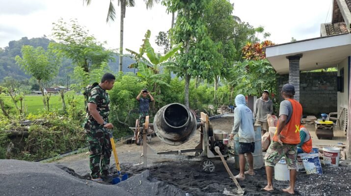 Semangat gotong royong dan dedikasi tinggi menjadi pemandangan sehari-hari di Desa Lebakharjo, Kecamatan Ampelgading, Kabupaten Malang, seiring berjalannya Program TNI Manunggal Membangun Desa (TMMD)