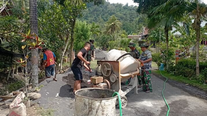 Keringat dan Semangat Gotong Royong Satukan Prajurit dan Warga Krajan 1A, Akses Desa Kian Terbuka.