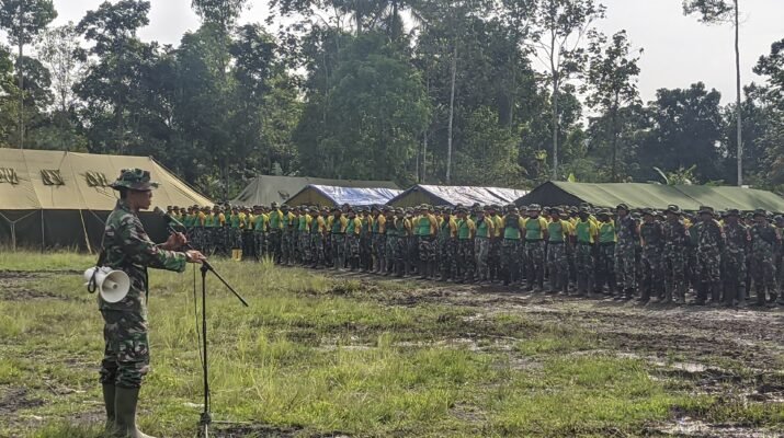 Ratusan personel TNI dari jajaran Kodim 0821 Lumajang dan Yonif 527/BY mengikuti apel yang dipimpin langsung oleh Pasi Ops Kodim 0821, Kapten Inf Anwar