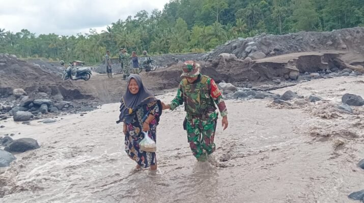 TNI Lumajang Tingkatkan Layanan Kemanusiaan: Bantu Warga Melintasi Aliran Lahar Dingin Semeru