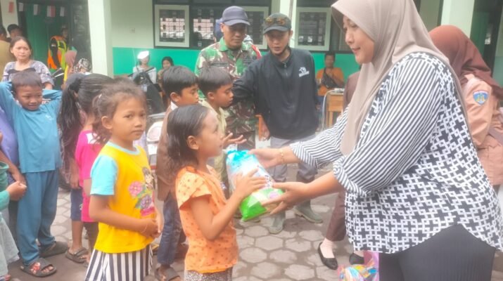 Babinsa Supiturang Dampingi Guru dan Relawan Berbagi Keceriaan untuk Anak-Anak di Pengungsian SDN 04 Supiturang.