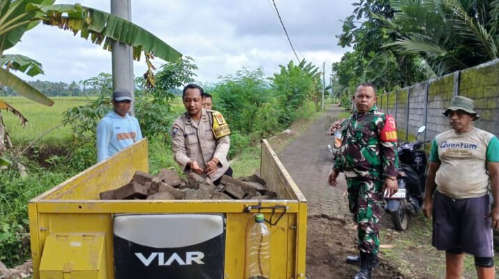 GENTENG – Prajurit TNI sejati tak hanya hadir saat upacara, namun juga dalam kucuran keringat gotong royong bersama rakyat. Hal inilah yang ditunjukkan oleh