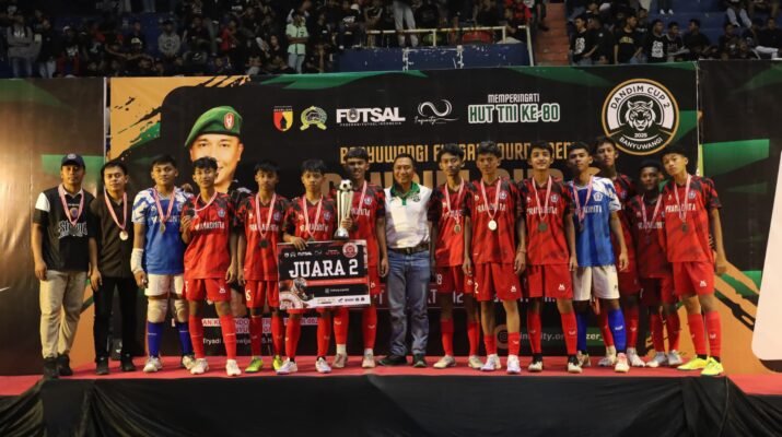Banyuwangi – Ribuan pasang mata tertuju ke lapangan GOR Tawang Alun, Sabtu sore (4/10/2025). Sorak penonton menggetarkan tribun saat Banyuwangi Futsal Turnament Dandim Cup II mencapai puncak acara penutupan yang penuh kemeriahan.