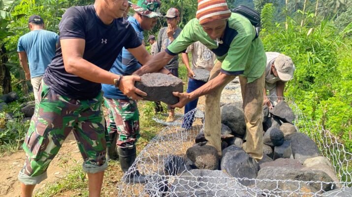 Di tengah tingginya intensitas hujan yang melanda wilayah Kecamatan Ampelgading, Kabupaten Malang, Satgas TNI Manunggal Membangun Desa (TMMD) ke-126 Kodim 0818/Malang-Batu terus menunjukkan semangat juang tinggi dalam menyelesaikan pekerjaan fisik di Desa Lebakharjo. Salah satu fokus utama yang kini dikejar adalah pemasangan kawat bronjong di sekitar aliran sungai yang rawan longsor dan erosi.