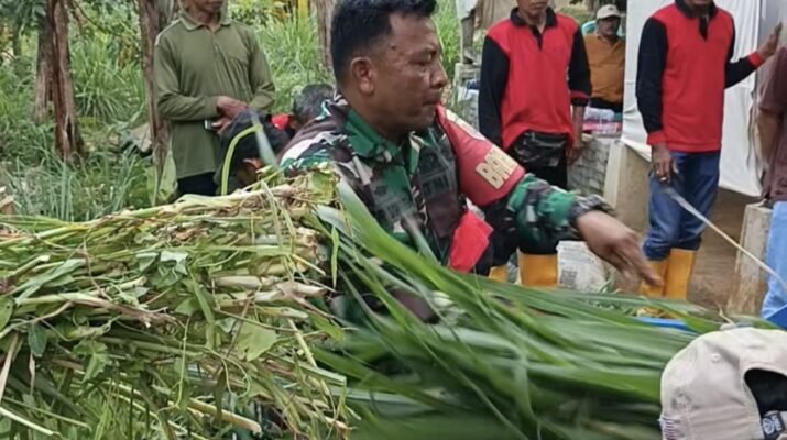 ‎Sejumlah anggota Satgas tampak aktif membantu warga, terutama peternak kecil, dalam proses pencampuran bahan dan pengemasan hasil fermentasi.
