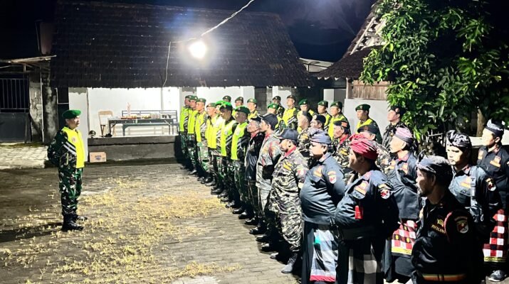 Koramil Bangorejo Bersama Banser dan Pecalang Gelar Apel Malam Siaga Gabungan