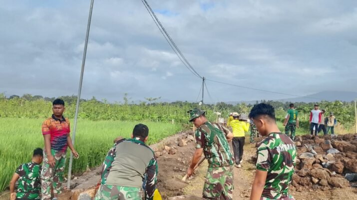 Banyuwangi – Wujud nyata kemanunggalan TNI dengan rakyat kembali terlihat di Desa Kesilir, Kecamatan Siliragung, Banyuwangi. Sertu Bambang Darmawan, Babinsa dari Posramil 0825/24 Siliragung, bersama puluhan warga setempat melanjutkan pembangunan saluran irigasi sebagai bagian dari program TNI Manunggal Membangun Desa (TMMD) ke-125 yang diselenggarakan oleh Kodim 0825/Banyuwangi, Jum’at (01/08/2025).